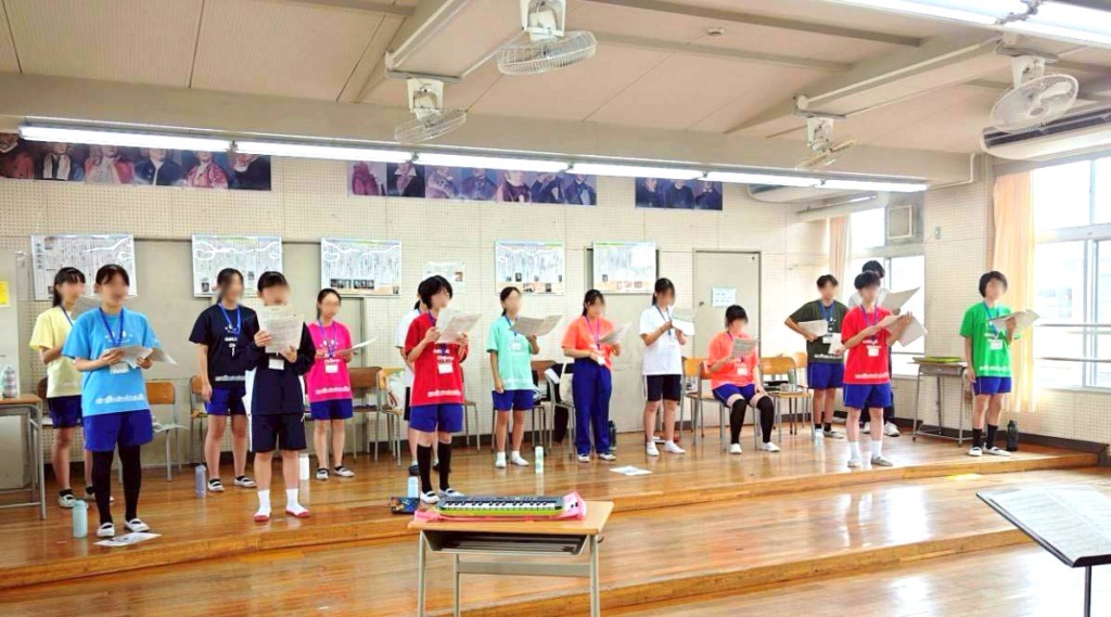 練習では、合唱の基本となる「呼吸の合わせ方」「姿勢」「響きの作り方」を中心に、
