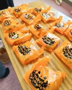保護者の方々が用意してくださったハロウィン仕様のお菓子を囲み、