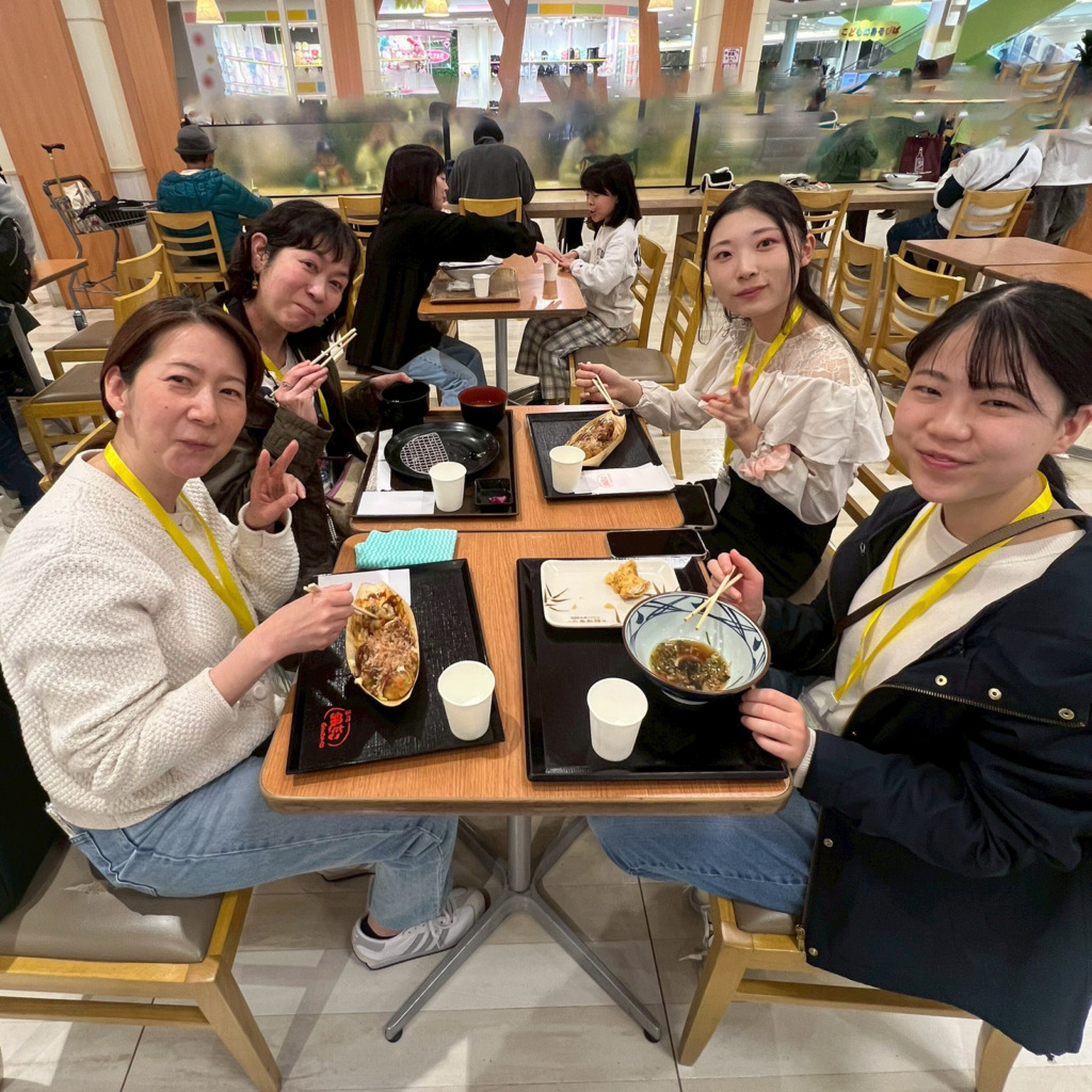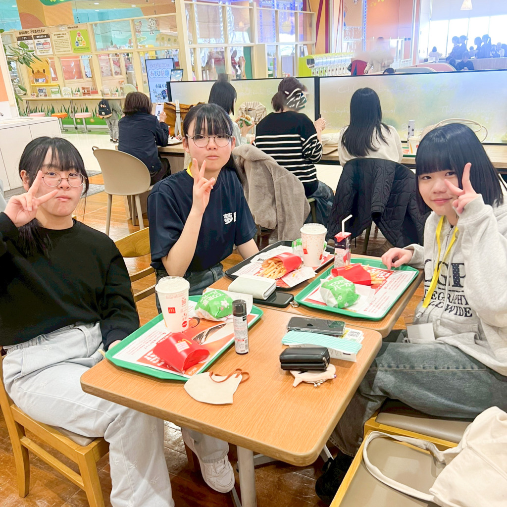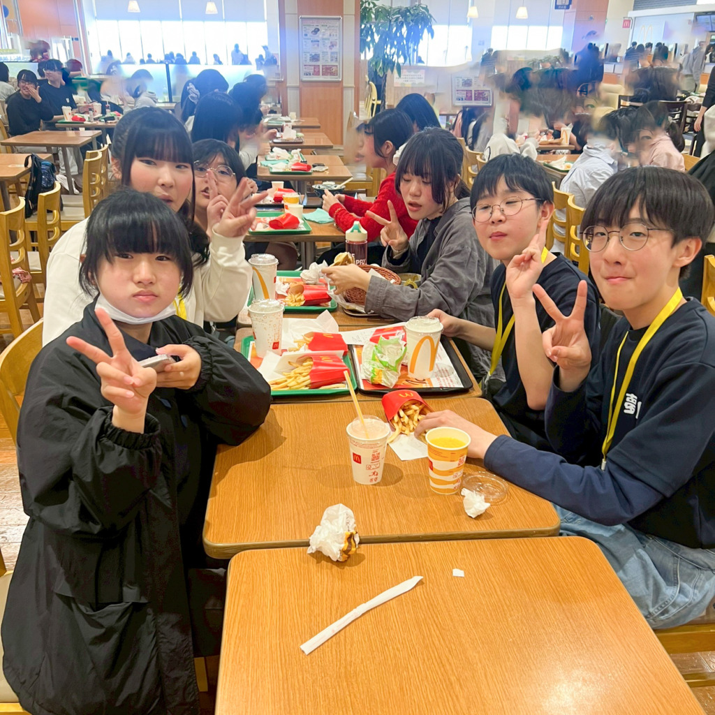 フードコートで友達と食事をしたり、学校の違う仲間同士で交流したりと、楽しい時間を過ごしました。