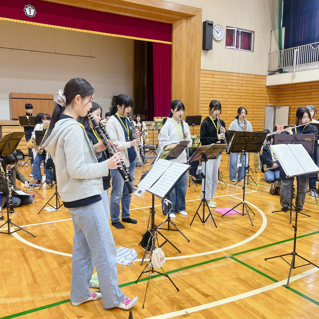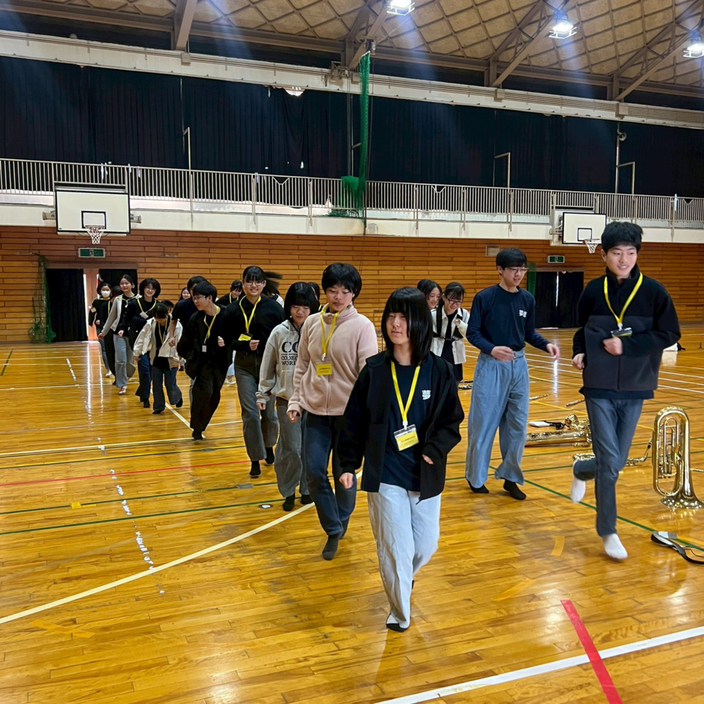 当日は朝、ならやま中学校の体育館に集合し、リハーサルを行いました。