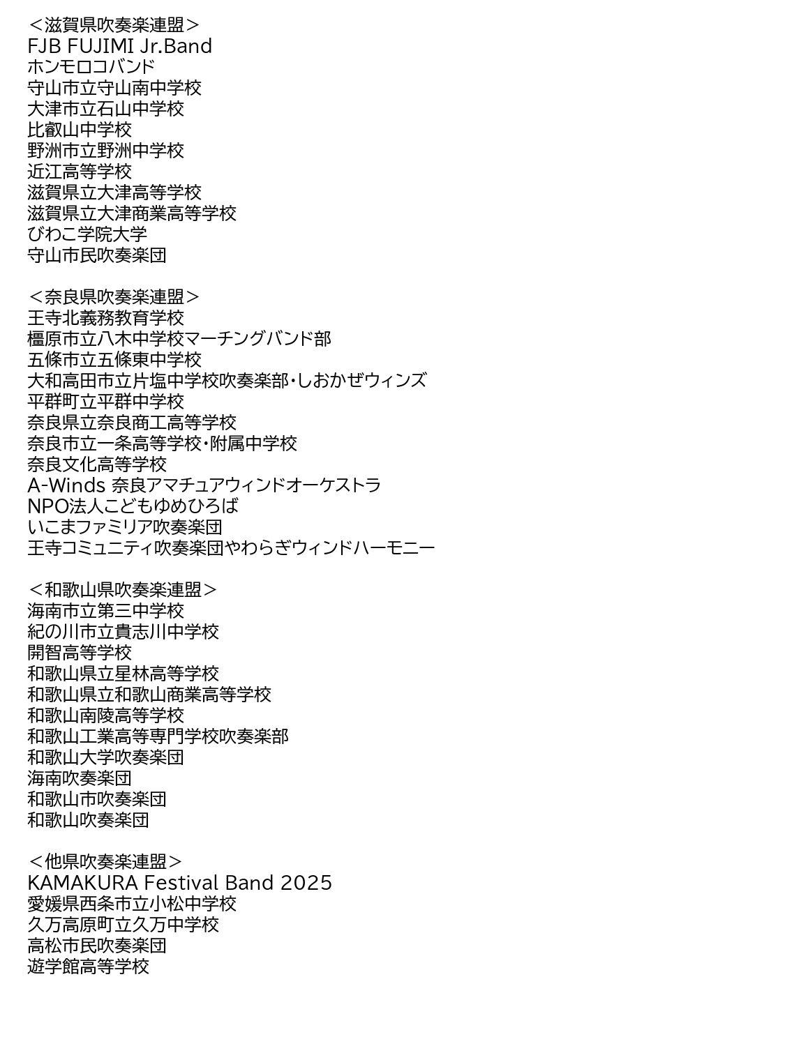 | ポップアップステージ出演者 10:02 フェスティバルステージ集合 10:12 演奏 ・マーチ「わかくさ」 ・「Magic」 10:22 終了~楽器片付け・楽器預ける(フェスティバルステーション裏) ~ 自由行動 ~ | ポップアップステージ出演しない方 楽器を預けることは出来ません ~自由行動~ |