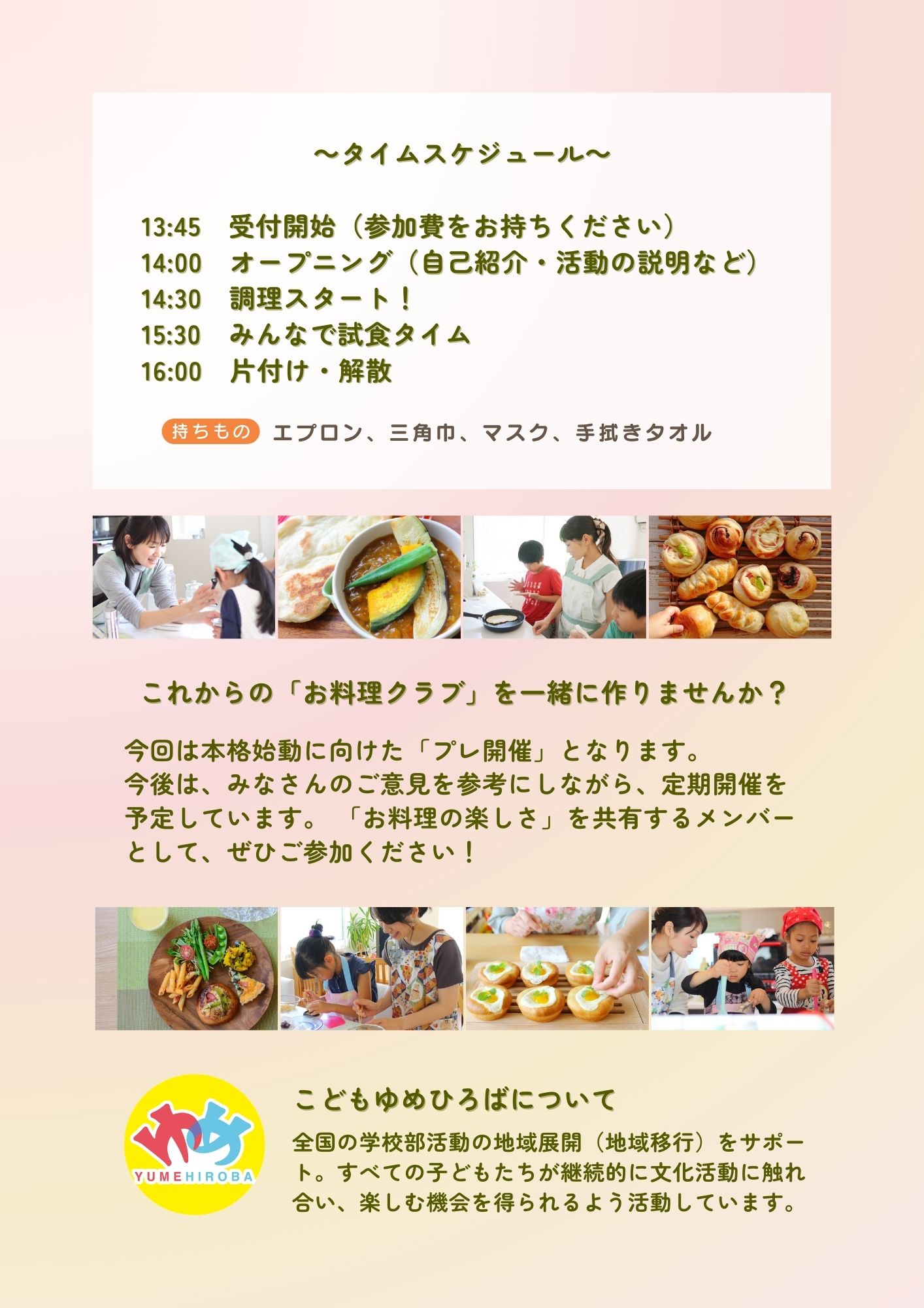 これからの「お料理クラブ」を一緒に作りませんか?